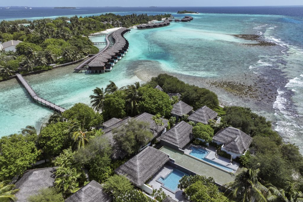 The Maldives has its share of islands that whisper tranquillity and others that radiate energy. Sheraton Maldives Full Moon Resort & Spa, set in the conveniently located North Malé Atoll, sits comfortably somewhere between the two — a relaxed, polished island that embraces barefoot living while offering the reassuring warmth of a globally trusted luxury brand. It’s the kind of place where life smooths out almost instantly: touch down at Malé, glide across the water on a short speedboat transfer, and within minutes you’re stepping onto soft sand with the lagoon stretching wide and impossibly blue before you. This close proximity to the international airport is a huge plus for many – as it means you can be relaxing in our own pool whilst others are waiting hours for their sea plane.