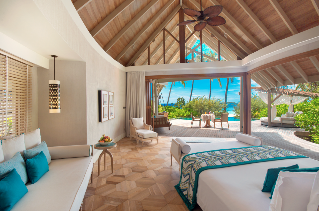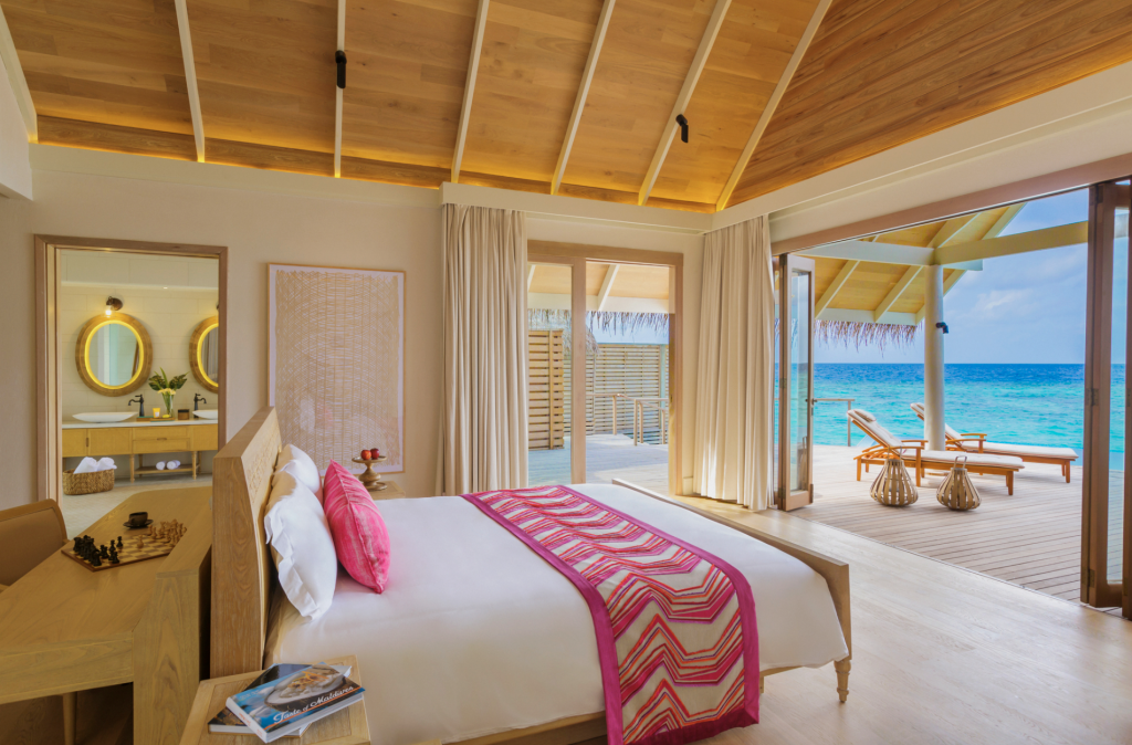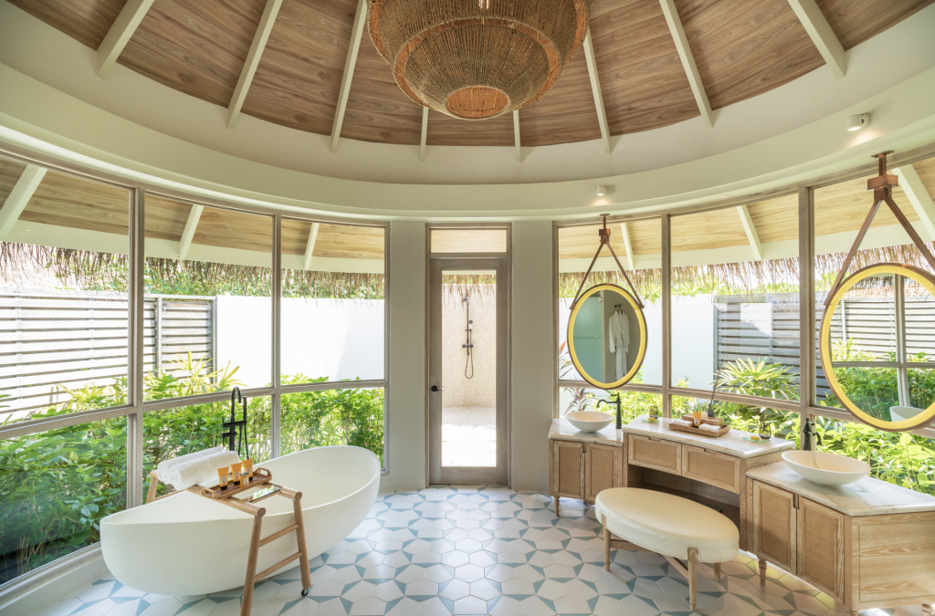 The island’s beach villas are among its most captivating spaces —exceptionally spacious, beautifully designed, and nestled discreetly among tropical greenery. Each villa opens directly to its own stretch of beach, but it was the sense of privacy that stood out most: the gentle rustle of palm fronds, the shimmer of the lagoon just beyond, and the villa’s generous outdoor living areas that encourage long, lazy days in seclusion.